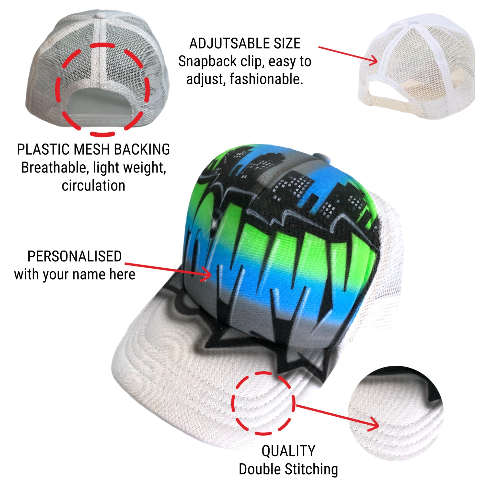 Our trucker and snapback caps are of excellent quality. The best way to care for them is to cold hand wash and air dry them. The paint we use is specifically designed for fabric and is therefore permanent if looked after.