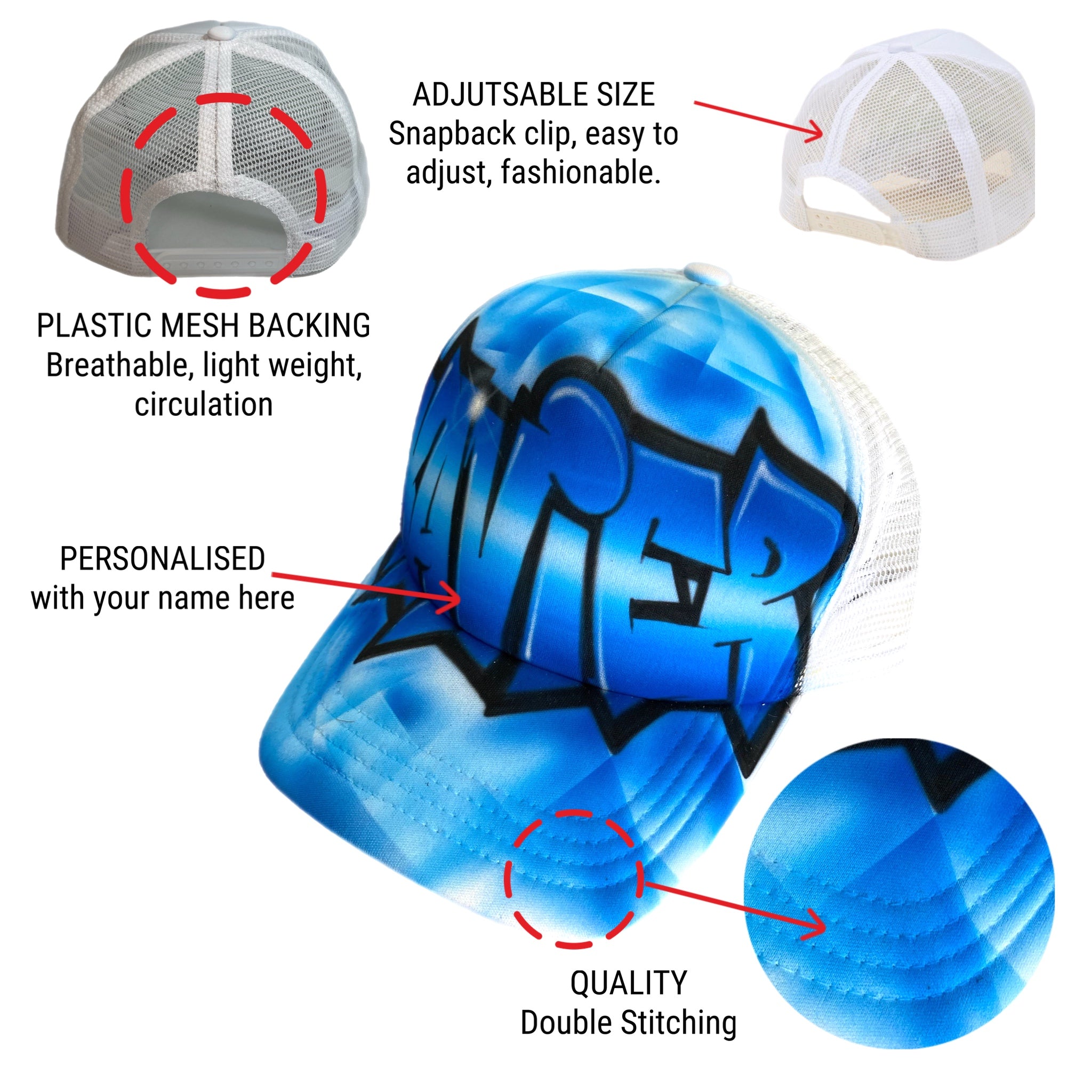 This trucker cap is already painted with the name: Jay pre painted on it and cannot be customised which is why it is discounted.