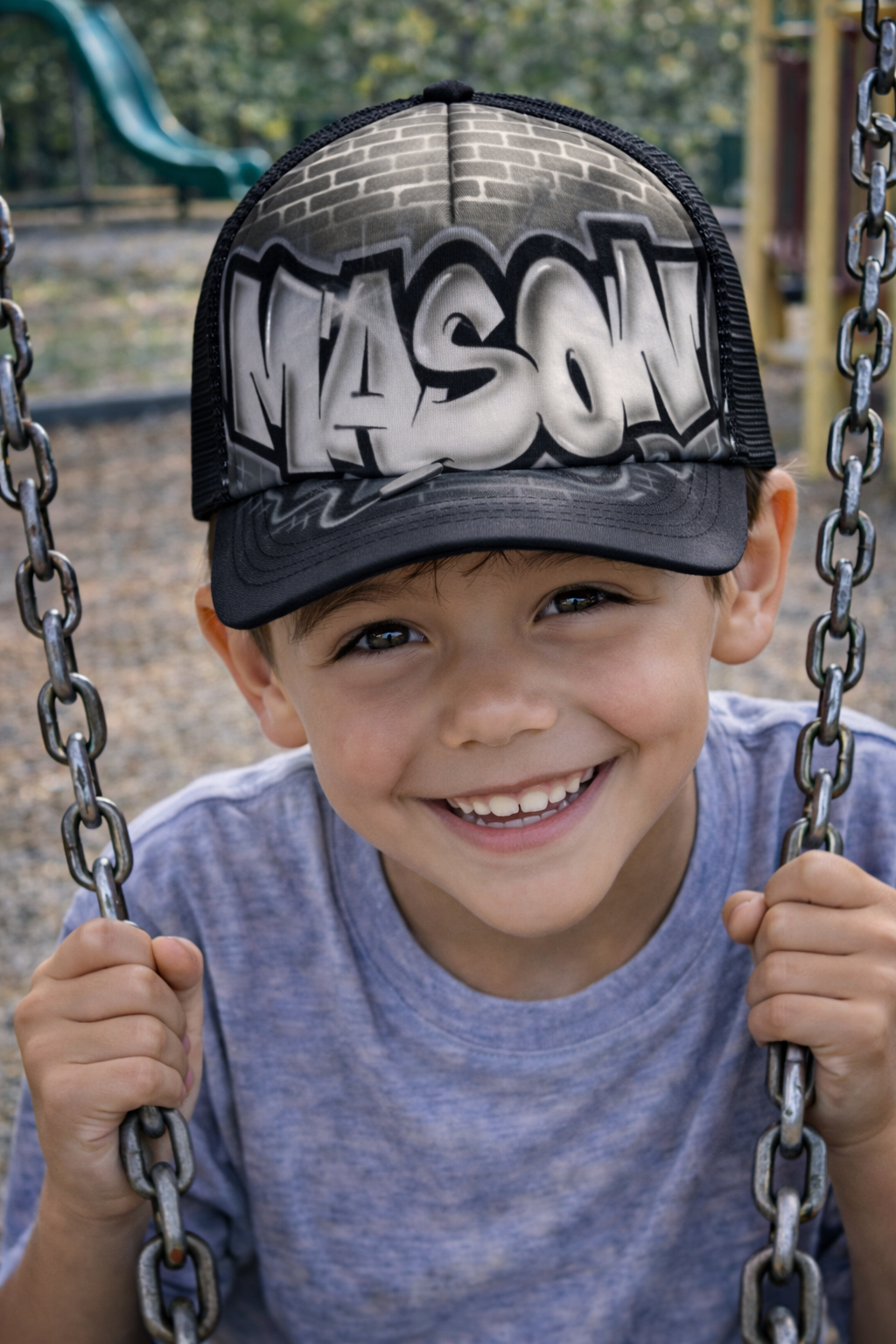 Real examples of the Graffiti Brick Wall Design Trucker Cap design: